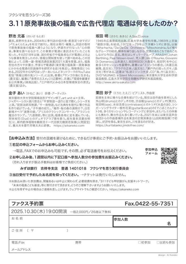 [主催]フクシマを思う実行委員会 [協賛]株式会社リベスト 株式会社麦