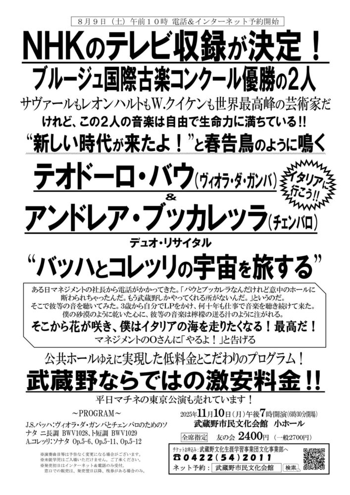 テオドーロ・バウ(ヴィオラ・ダ・ガンバ) アンドレア・ブッカレッラ(チェンバロ)