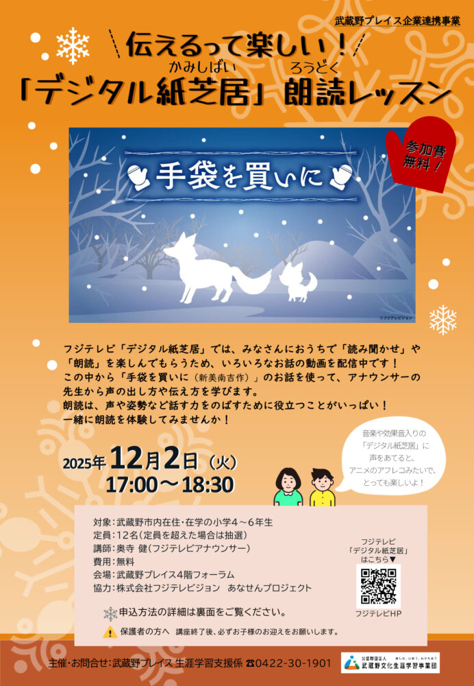[主催](公財)武蔵野文化生涯学習事業団 [協力]株式会社フジテレビジョン あなせんプロジェクト