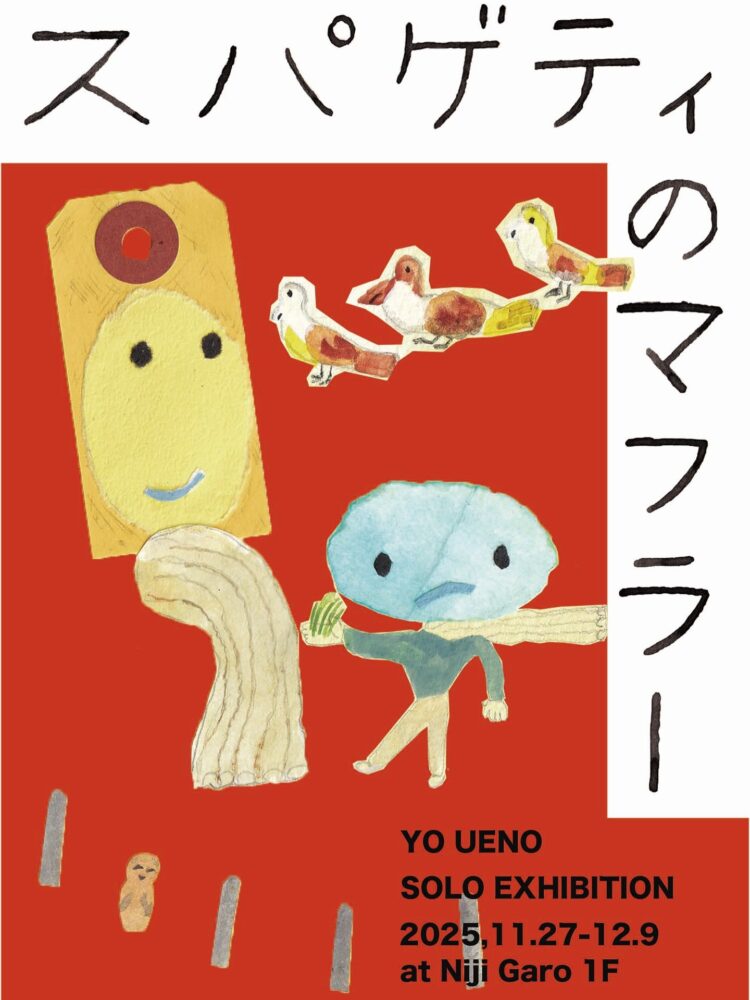 うえのよう個展「スパゲティのマフラー」 開催日 2025年11月27日(木)〜12月9日(火)※水曜休み 時間 12:00〜20:00(最終日18:00まで) 会場 にじ画廊〒180‐0004 東京都武蔵野市吉祥寺本町2‐2‐10 JR中央線 吉祥寺駅より徒歩4分 Web http://nijigaro.com/minispace.html