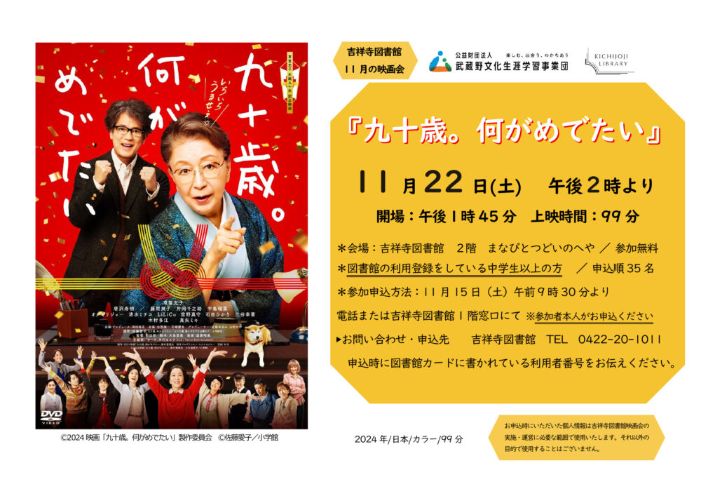 11月の映画会『九十歳。何がめでたい』