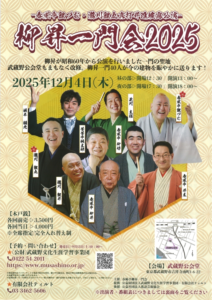 [主催]春風亭柳昇一門会 [提携](公財)武蔵野文化生涯学習事業団・有限会社ティルト [後援](公社)落語芸術協会