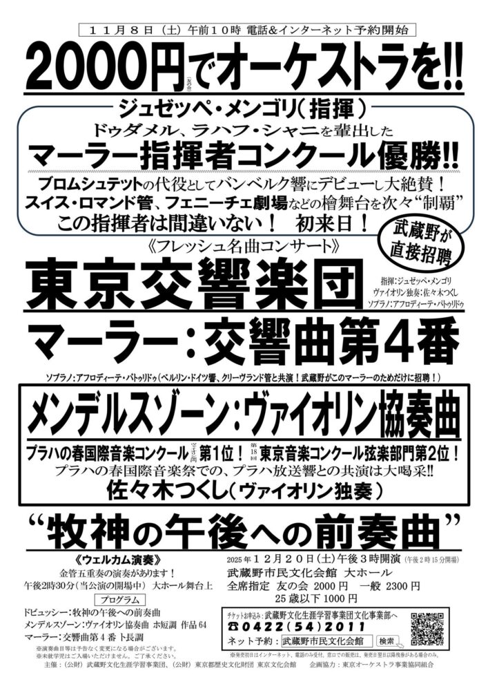 ジュゼッペ・メンゴリ(指揮) 佐々木つくし(ヴァイオリン) アフロディーテ・パトゥリドゥ(ソプラノ) 東京交響楽団(オーケストラ)