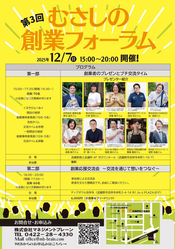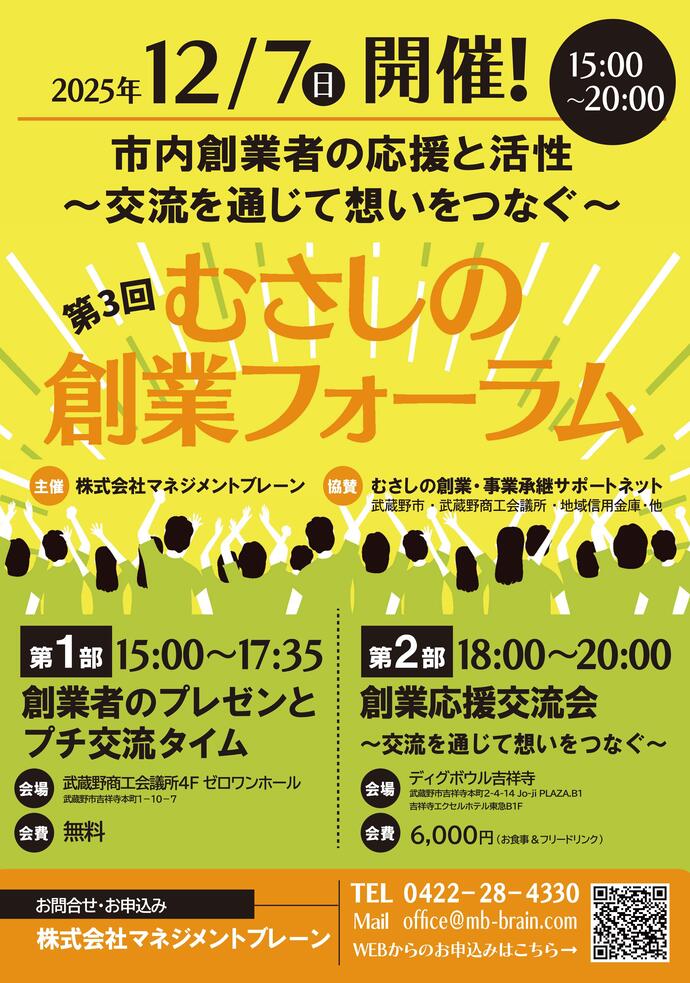 [主催]株式会社マネジメントブレーン [協賛]むさしの創業・事業承継サポートネット(武蔵野市・武蔵野商工会議所・地域信用金庫 他)