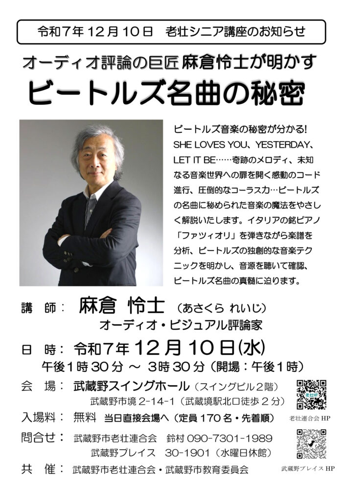 老壮シニア講座12月 オーディオ評論の巨匠麻倉怜士が明かすビートルズ名曲の秘密