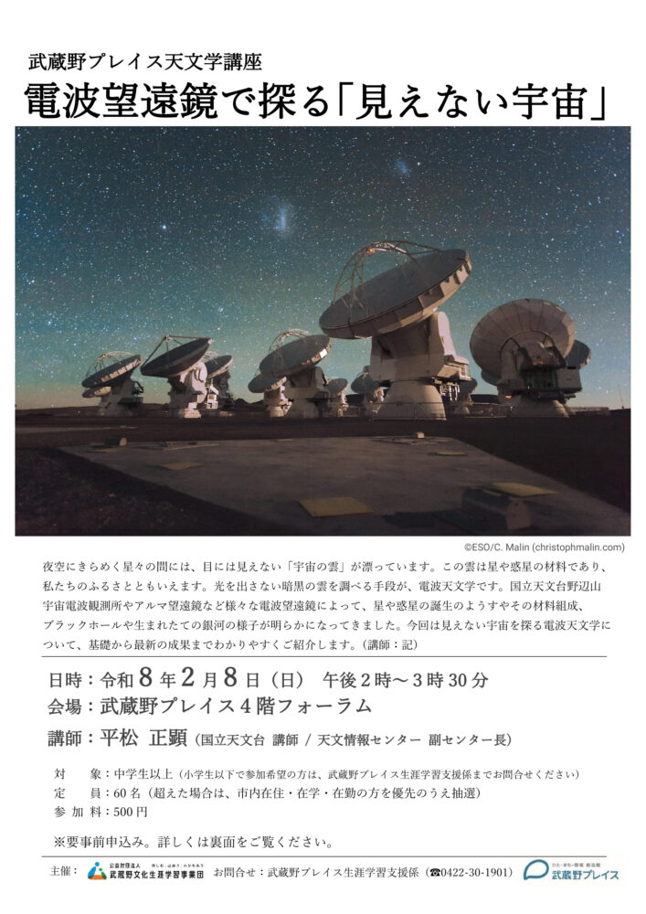 武蔵野プレイス天文学講座「電波望遠鏡で探る『見えない宇宙』」