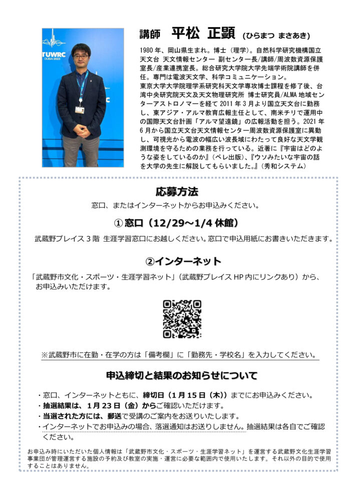 講師:平松 正顕(自然科学研究機構国立天文台 天文情報センター副センター長/講師)
