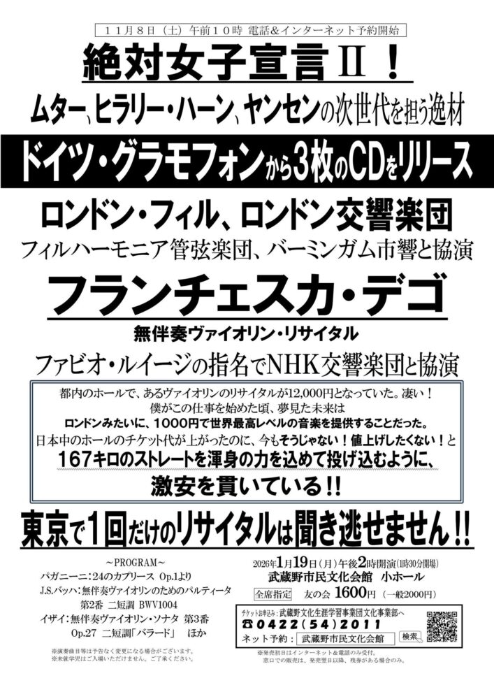 フランチェスカ・デゴ 無伴奏ヴァイオリン・リサイタル