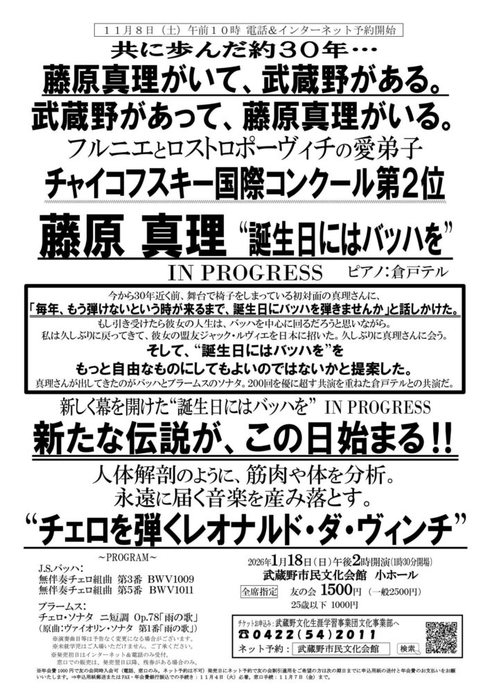 藤原真理 チェロ・リサイタル "誕生日にはバッハを" IN PROGRESS