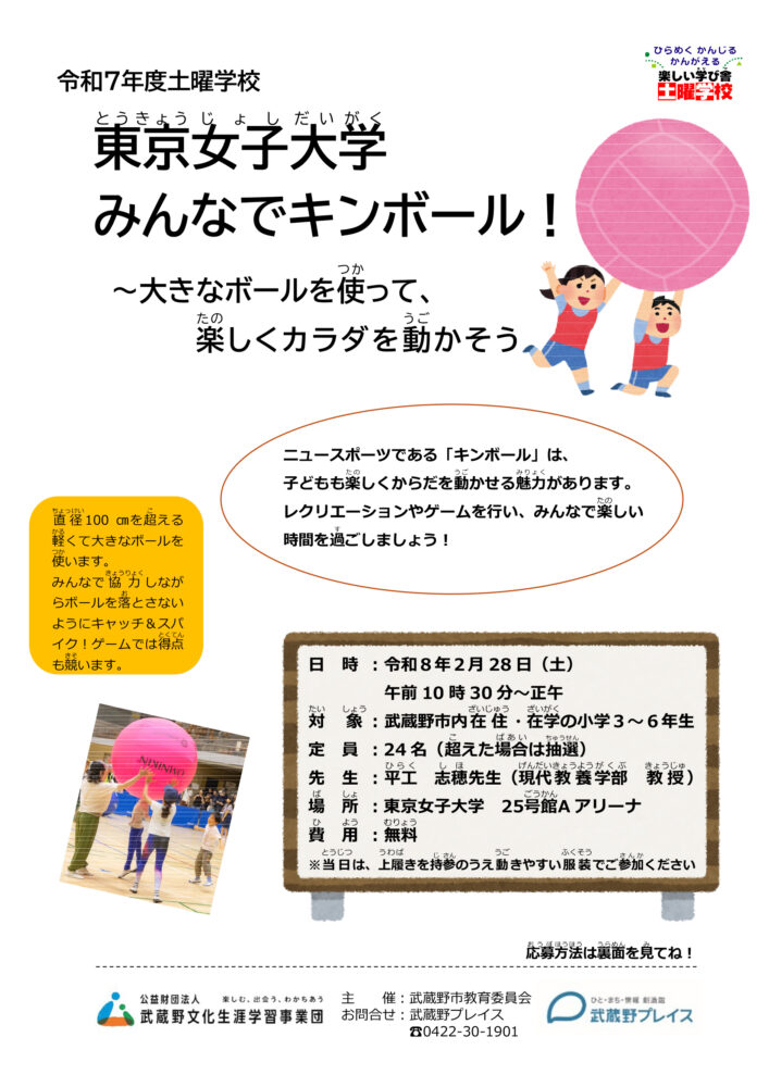 土曜学校「東京女子大学 みんなでキンボール!~大きなボールを使って、楽しくカラダを動かそう~」