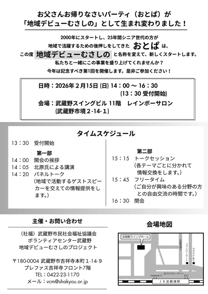[主催]社会福祉法人武蔵野市民社会福祉協議会、ボランティアセンター武蔵野、地域デビューむさしのプロジェクト