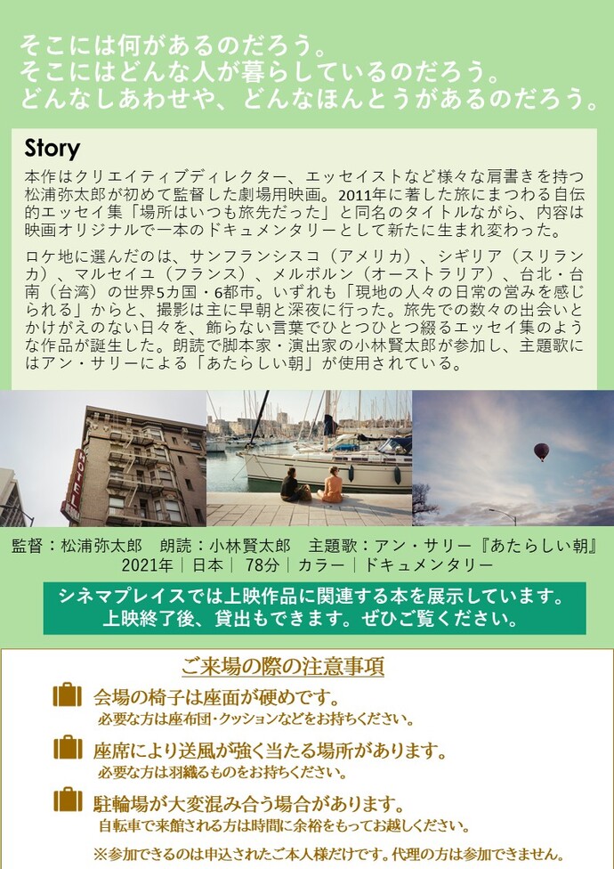 シネマプレイス~夜の映画会~『場所はいつも旅先だった』