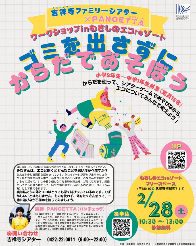 吉祥寺ファミリーシアター×PANCETTA「ゴミを出さずにからだであそぼう」ワークショップinむさしのエコreゾート