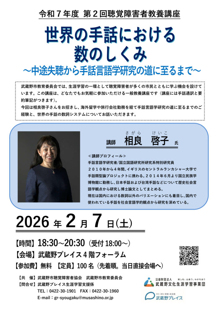 [主催](公財)武蔵野文化生涯学習事業団 [共催]武蔵野市聴覚障害者協会/武蔵野市教育委員会