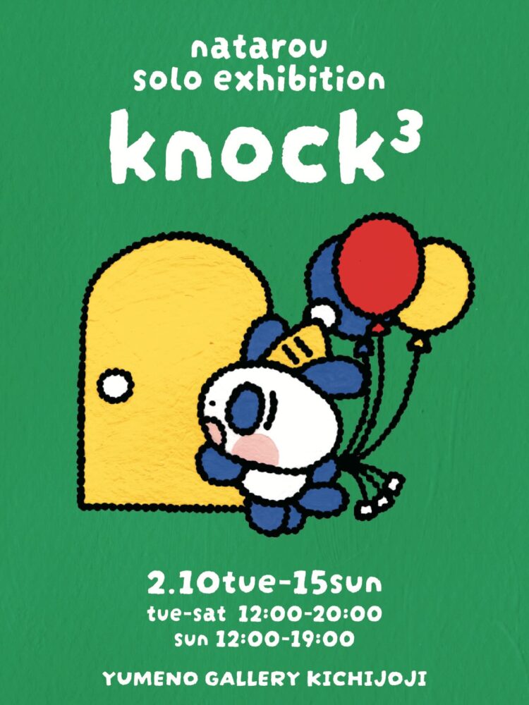 なたろう 個展「knock3」 開催日 2026年2月10日(火)〜15日(日) 時間 12:00〜20:00(最終日19:00まで) 会場 ユメノギャラリー吉祥寺〒180-0002 東京都武蔵野市吉祥寺東町1-5-13 はぴすと押山2F Web https://www.yumenogallerykichijoji.com/schedule/