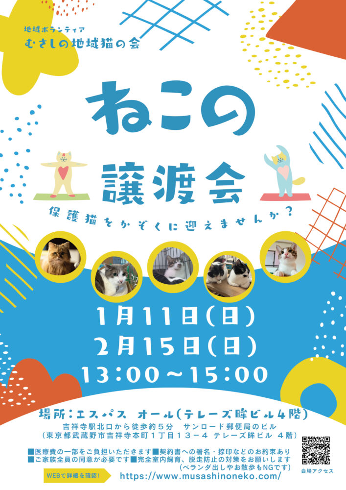 むさしの地域猫の会によるねこの譲渡会が開催されます。
