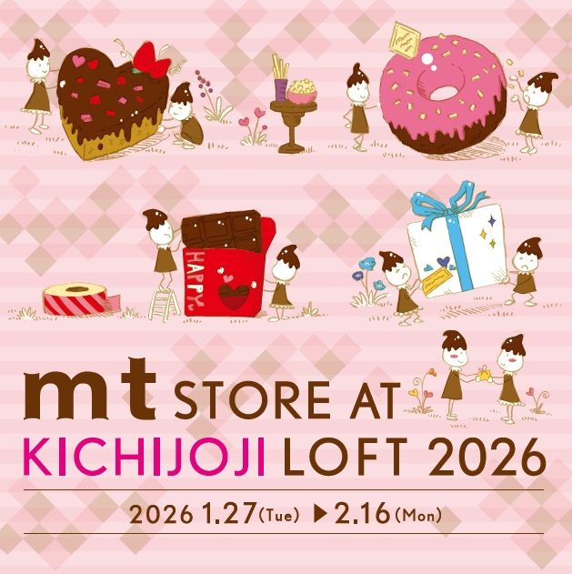 ・限定テープ ※数量限定につき無くなり次第終了 ・まるいちきゅう限定テープ ※数量限定につき無くなり次第終了 ・カラーセレクトテープ ・mtタピオカパック ・ラッピングペーパー ・mtガチャ ※当たり券が出ると当たり限定テープをおひとつプレゼント! ・mtアウトレット ・過去のロフトイベントテープをアウトレット販売 ・その他定番商品