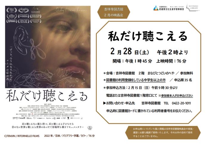 映画会『私だけ聴こえる』(2022年、日本、バリアフリー字幕、カラー、76分) 監督:松井至