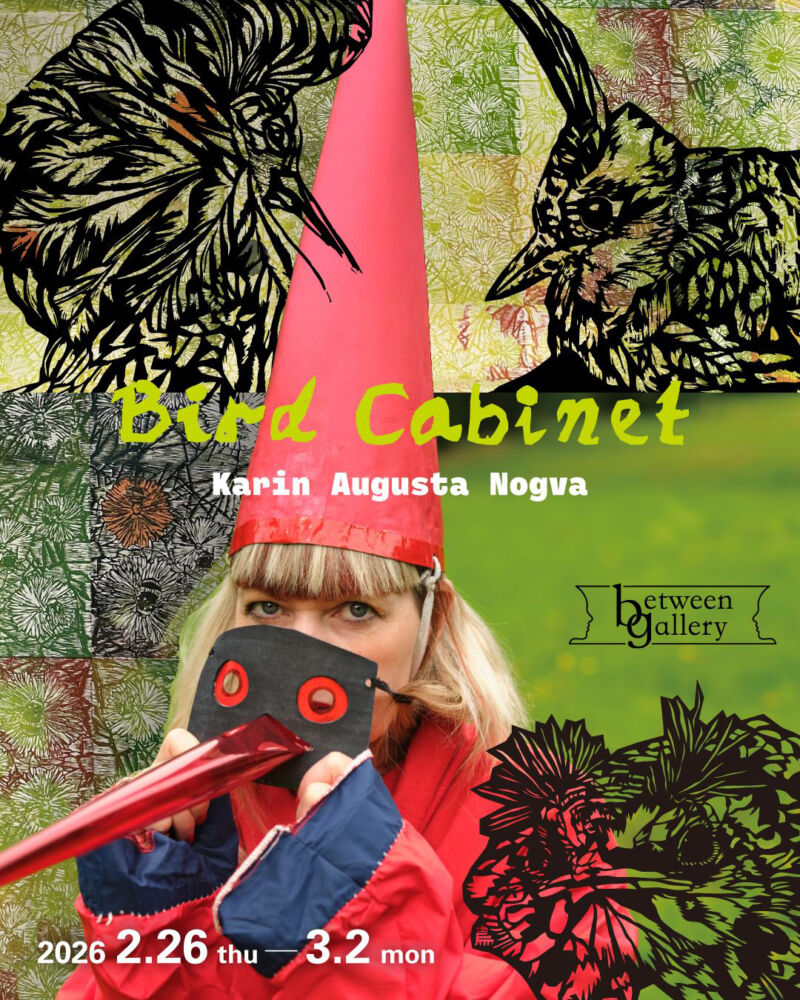Karin Augusta Nogva個展『Bird Cabinet』 開催日 2026年2月26日(木)〜3月2日(月) 時間 11:00〜19:00 会場 between gallery東京都 三鷹市井の頭3-12-13 井之頭パークビル102 Web https://betweengallery.com/karinaugustanogvasoloexhibition Instagram @between.gallery