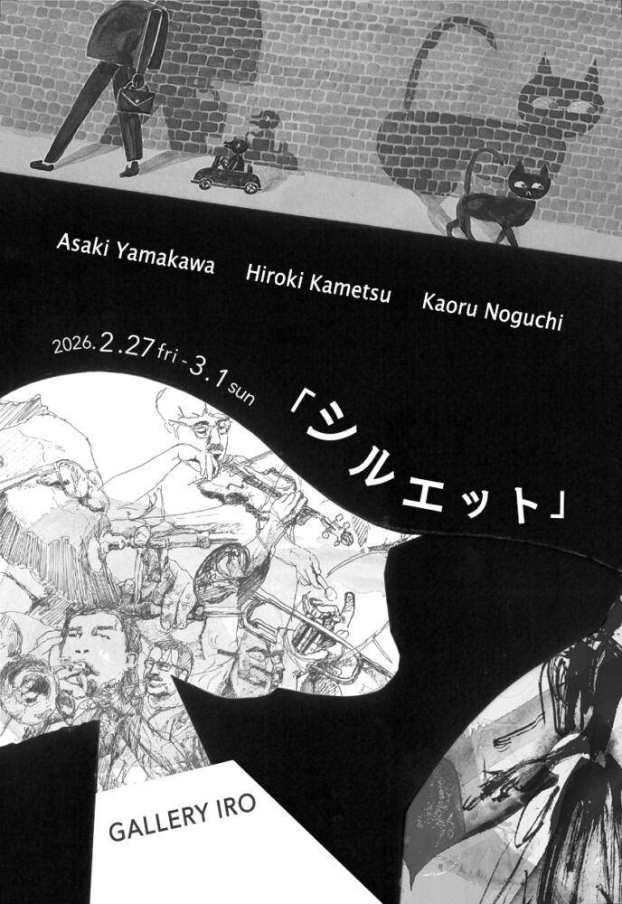 グループ展「シルエット」 開催日 2026年2月27日(金)〜3月1日(日) 時間 13:00〜20:00(最終日12:00〜18:00) 会場 GALLERY IRO〒180-0004 東京都武蔵野市吉祥寺本町1-37-7-101 吉祥寺駅より西荻窪方面へ歩いて7分程度、五日市街道沿い。 Web https://1-6.jp/silhouette
