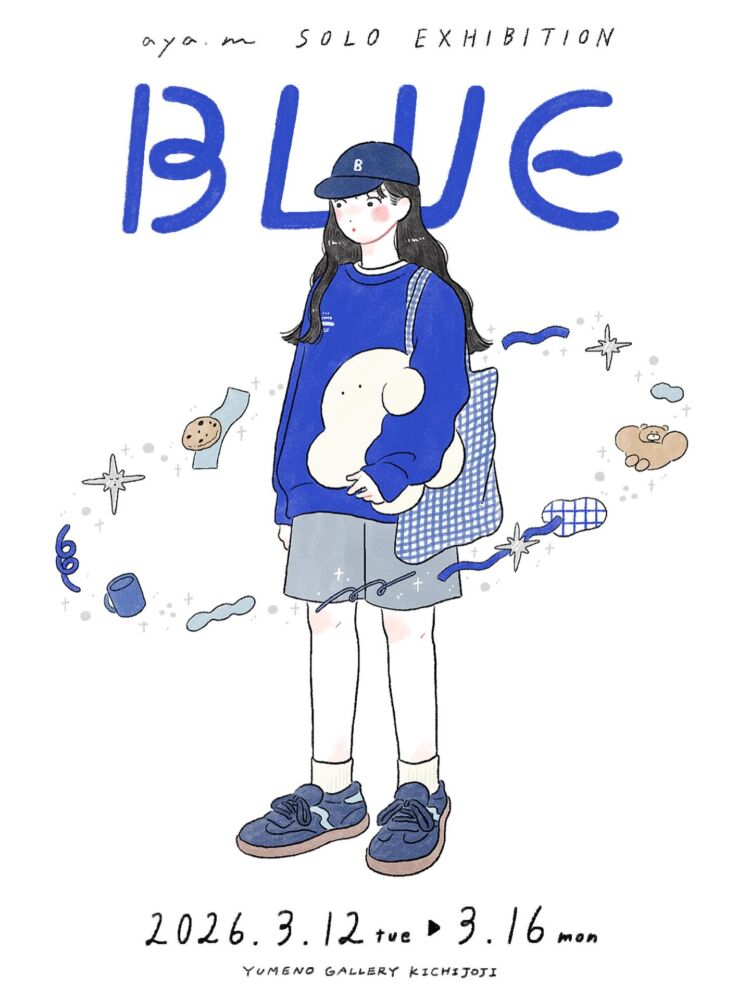 aya.m 個展 「BLUE」 開催日 2026年3月12日(木)〜16日(月) 時間 12:00〜20:00(木・月曜18:00まで) 会場 ユメノギャラリー吉祥寺〒180-0002 東京都武蔵野市吉祥寺東町1-5-13 はぴすと押山2F Web https://www.yumenogallerykichijoji.com/schedule/