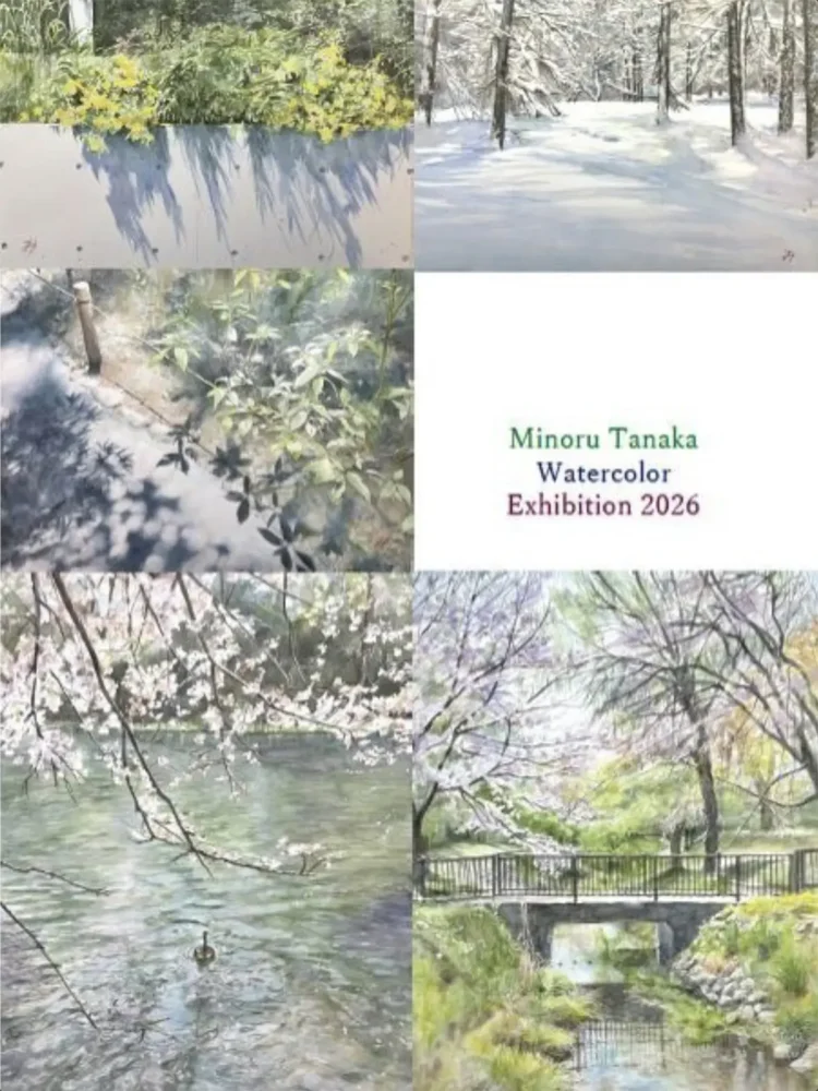 Minoru Tanaka Watercolor Exhibition 2026 開催日 2026年3月24日(火)〜29日(日) 時間 11:00〜19:00(最終日17:00まで) 会場 Gallery KAZE〒180-0003 武蔵野市吉祥寺南町1-18-23 MINAMICHO GARDEN B1F Web https://gallery-kaze.jp/exhibition/971/ Instagram @m.tanaka.watercolor